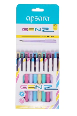 Apsara Genz Ball Pen | Smooth & Long Writing & Comfortable Grip | Attractive Body Colures & Look | Ink Blue- 0.7 MM Tip | 10 Pcs Pack