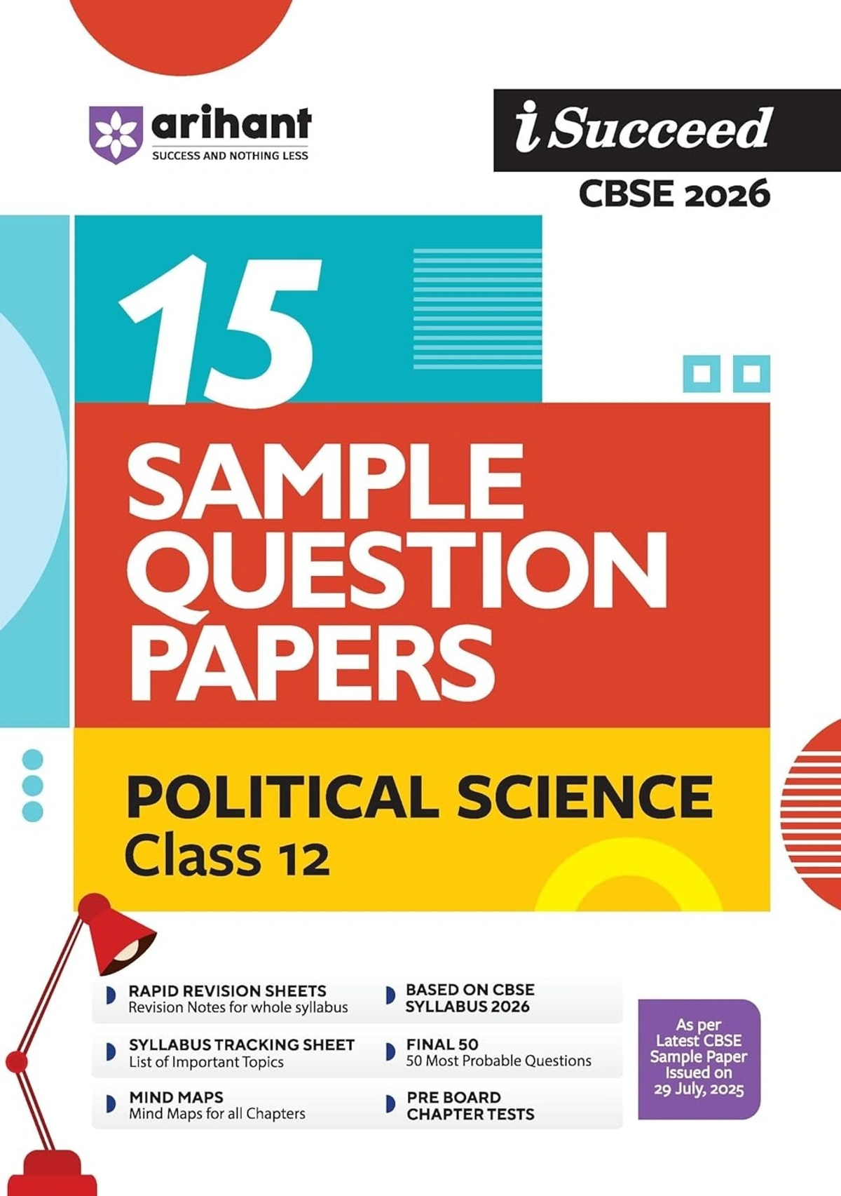 Arihant I Succeed POLITICAL SCIENCE Sample Question Papers CBSE | 15 Sample Papers | Based on Latest CBSE Specimen Paper | Rapid Revision Sheets, Pre-Board Chapter Tests, Mind Maps, Final 50 Questions, Solutions as per Marking Scheme - Class 12 [For 2026 Exams]