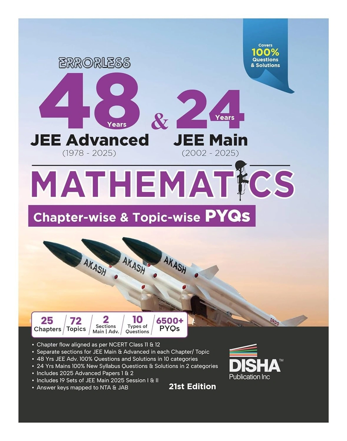 The thoroughly Revised & Updated 21st edition of the book “Disha Publication Errorless 48 Previous Years IIT JEE Advanced (1978 - 2025) & 24 Years JEE Main (2002 - 2025) Mathematics Chapter-wise & Topic-wise Solved Papers” is a comprehensive and integrated JEE PYQ book, designed specifically for aspirants of IIT JEE Advanced, and JEE Mains.