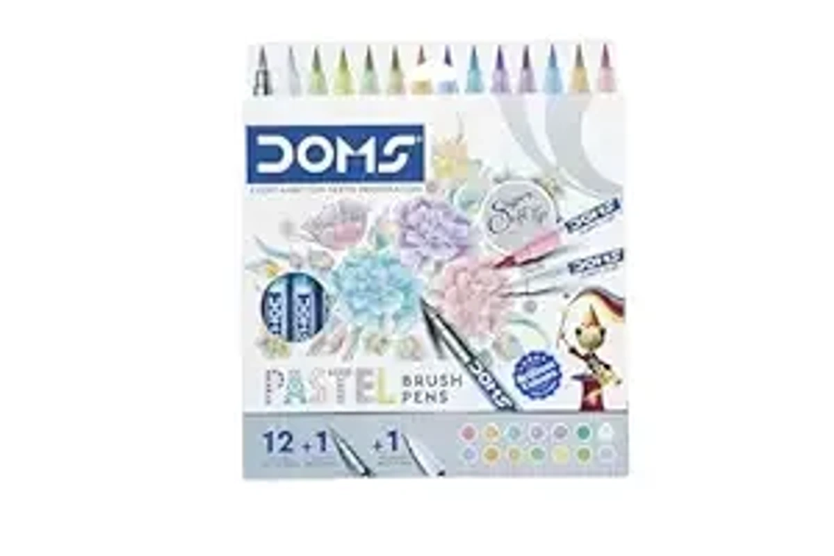 Doms Super Soft Tip Pastel Shades Brush Pen Set | 12 Pastel Shades + 1 Silver Shade + 1 Blender | Ideal for Doodling, Illustrations, Calligraphy, Artists, Studenst & Professioanls | Pack Of 1