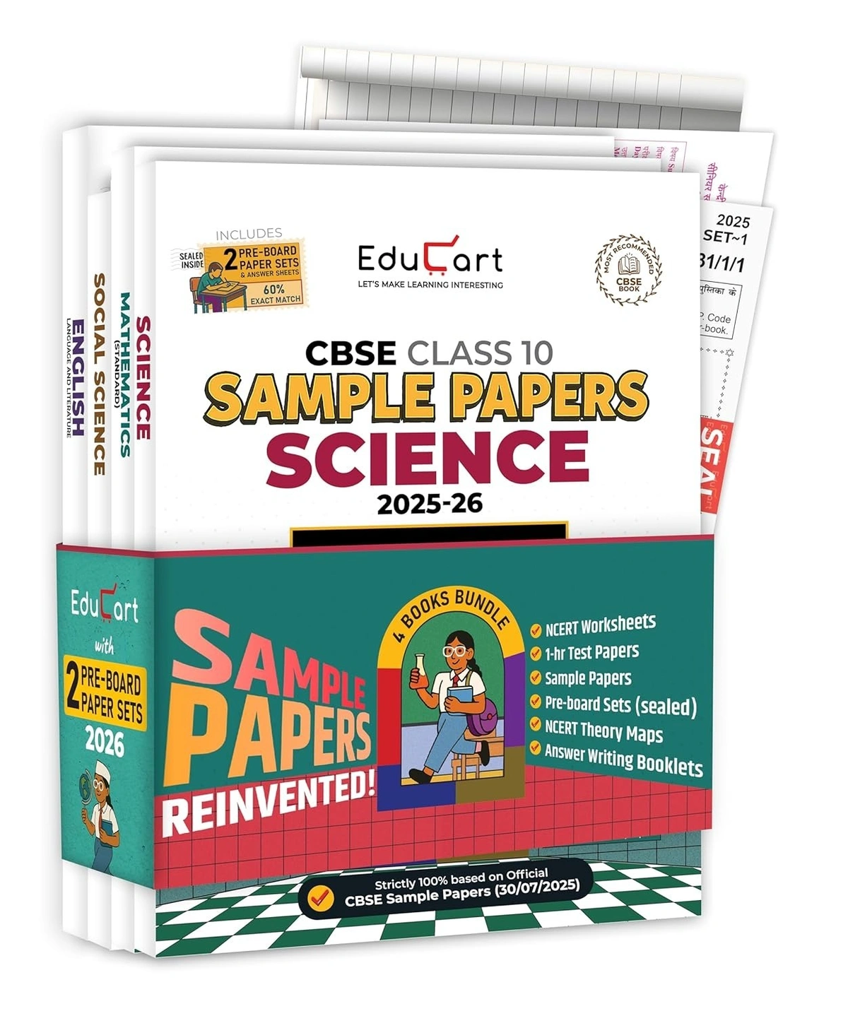 Educart CBSE Sample Papers - Science, Mathematics Standard, Social Science & English Lang. & Literature 2025-26 (Introducing exclusive step-by-step new practice concept on 2026 pattern) - Class 10 [Set of 4 Books]