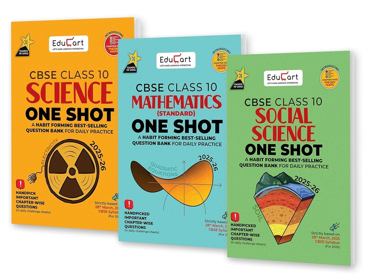 Educart SCIENCE, MATHEMATICS & SOCIAL SCIENCE One Shot Question Bank based on new syllabus (for 2026 Exams) - Class 10 [Set of 3 Books]