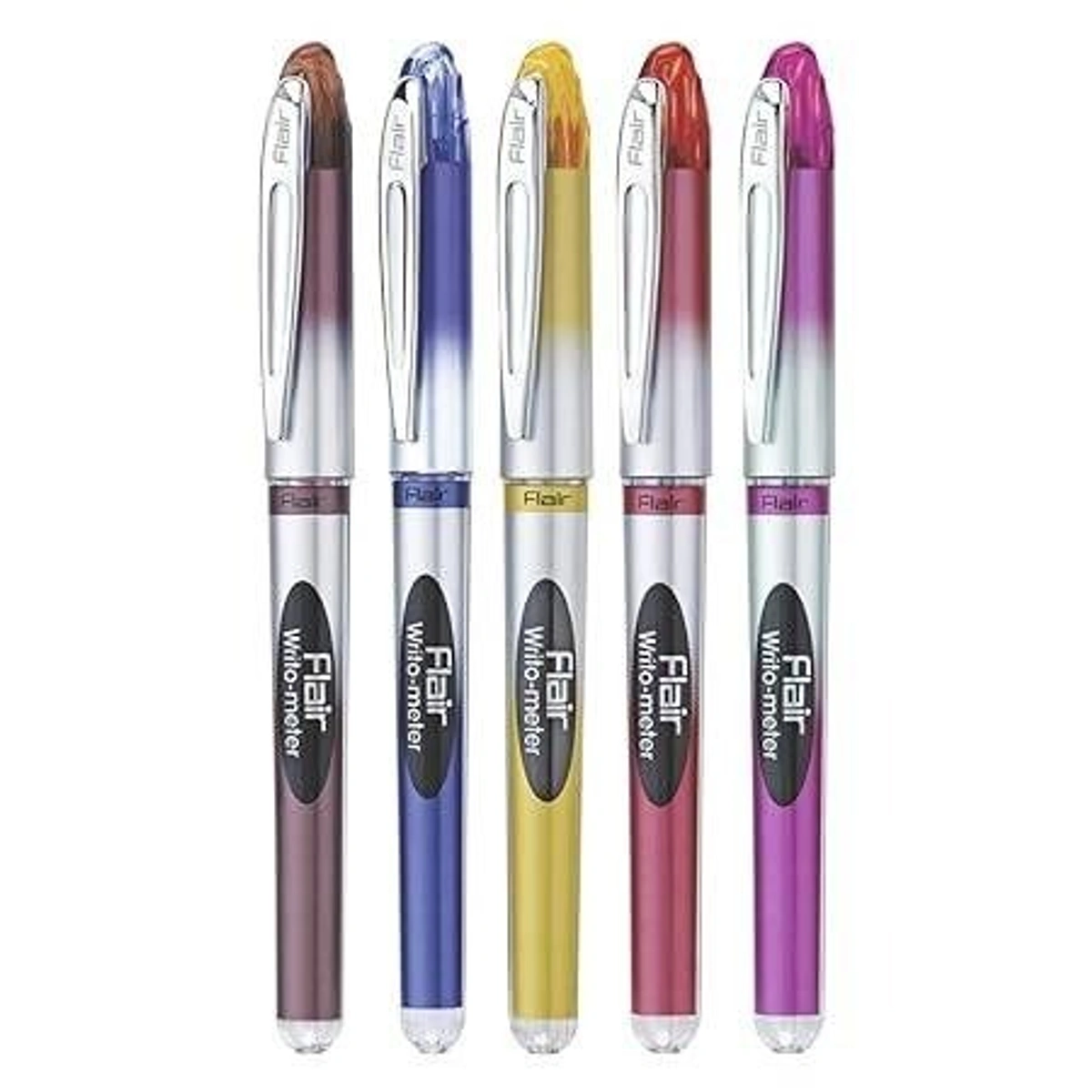 FLAIR Writometer 0.6mm Ball Pen Box Pack |Writes Upto 10,000 Meters | Blue Ink, Pack of 5 Pens