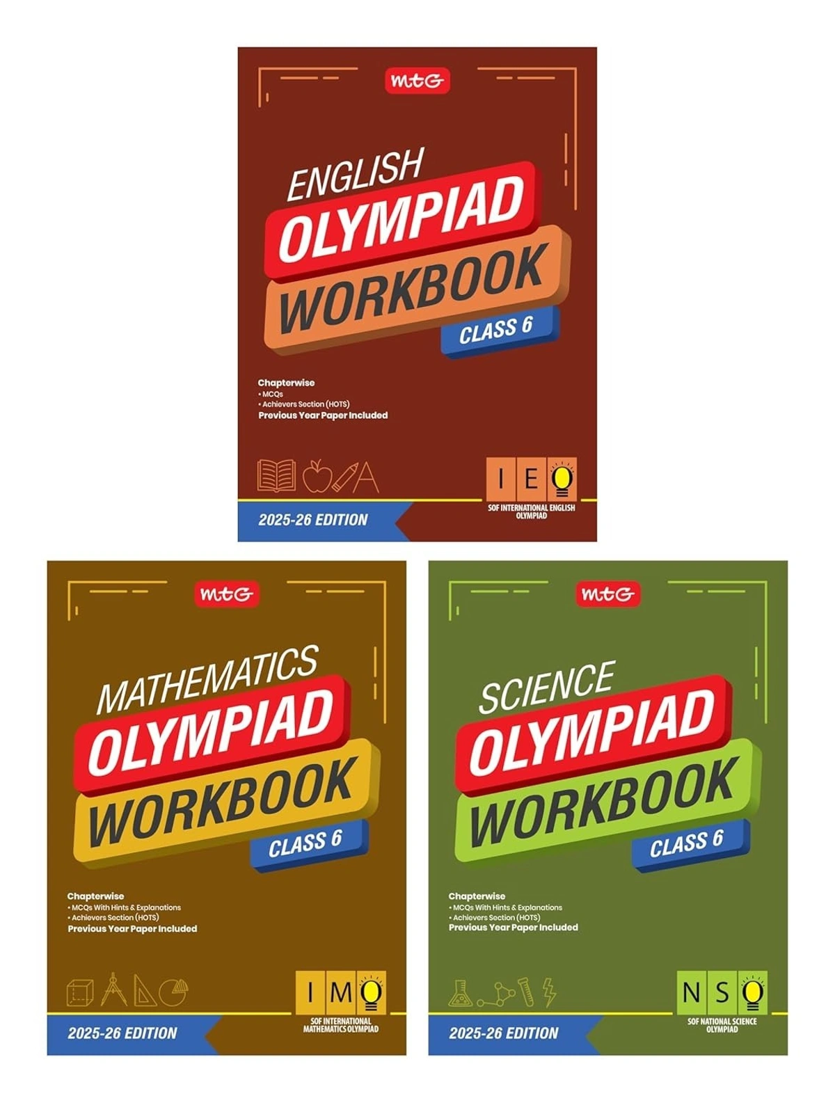 MTG presents the fully revised & updated “Olympiad Workbook” combo of 3 books for NSO, IMO & IEO to ace the SOF Olympiad exams (2025-26) exam.