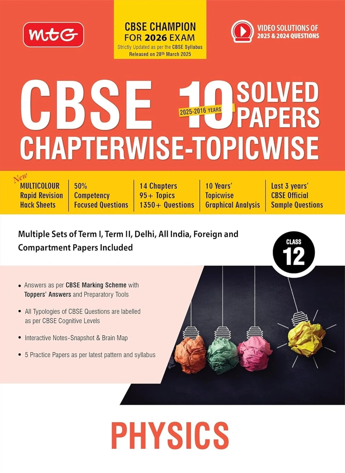 Masterclass preparation for Class 12 Physics just got easier! The MTG PHYSICS - 10 Years (2025 - 2016) Chapterwise Topicwise Solved Papers is your ultimate study companion tailored for CBSE students. Designed to meet the latest exam pattern, this comprehensive guide includes solved papers spanning a decade, CBSE sample papers, and free video solutions for Past Year Questions (PYQs). Whether you're aiming for board exam excellence or conceptual clarity, this resource is a must-have!