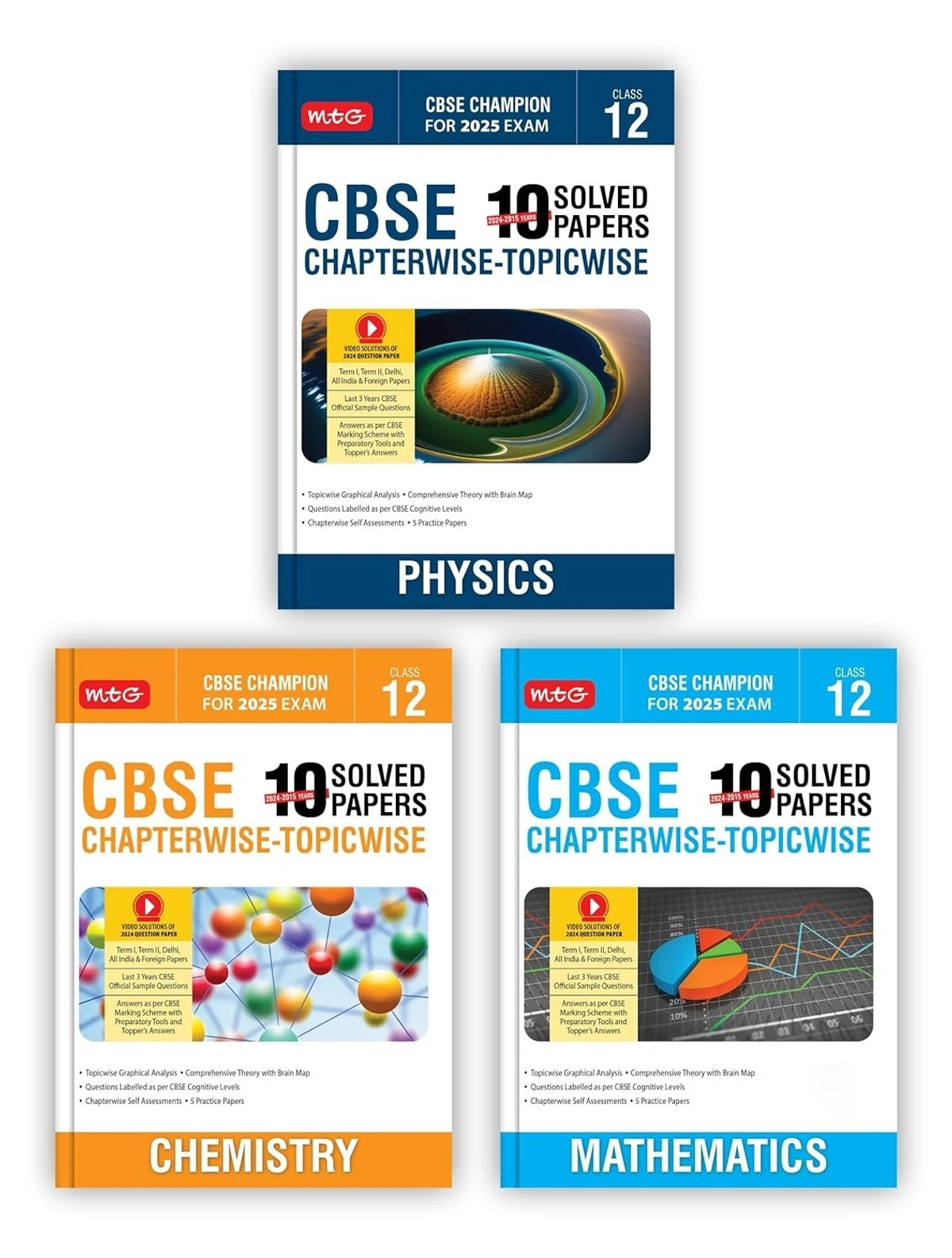 MTG (PHYSICS, CHEMISTRY, MATHEMATICS) - 10 Years (2024 - 2015) Chapterwise Topicwise Solved Papers - Class 12 CBSE