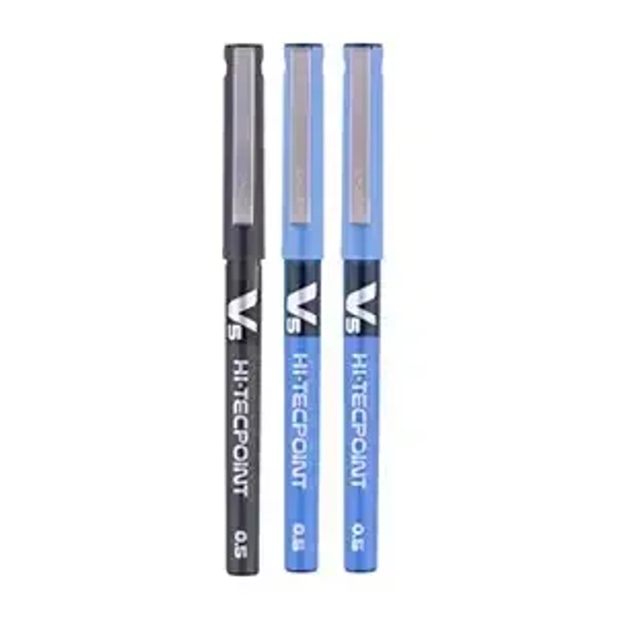 Pilot Hi-Tecpoint V5 0.5mm Extra Fine Point Pure Liquid Ink Roller Ball Pen | Pack Of 3 (2 Blue + 1 Black)