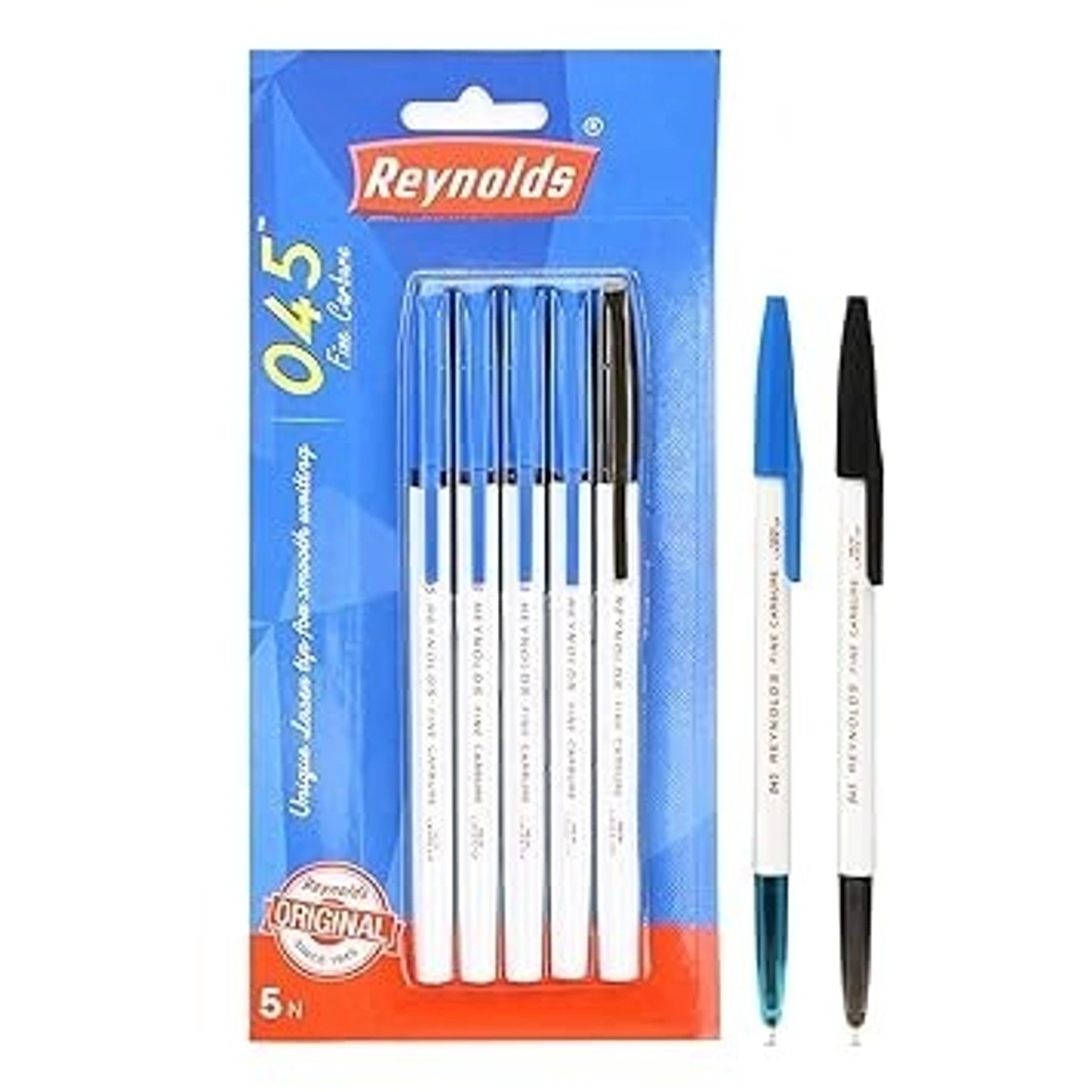 Reynolds 045 Ball Pen SET - 5 PENS (4 Blue 1 Black) | PENS WITH COMFORTABLE GRIP | BALL PENS FOR WRITING | PEN FOR STUDENTS & OFFICE STATIONERY | 0.7 mm TIP SIZE