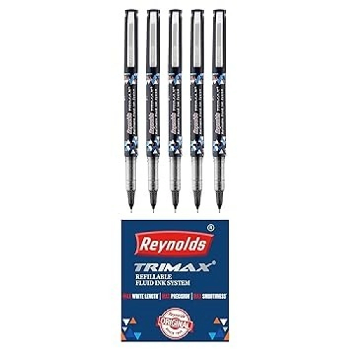 Reynolds TRIMAX RollerBall Pen SET - 5 PENS (BLACK) | 0.5 mm TIP SIZE