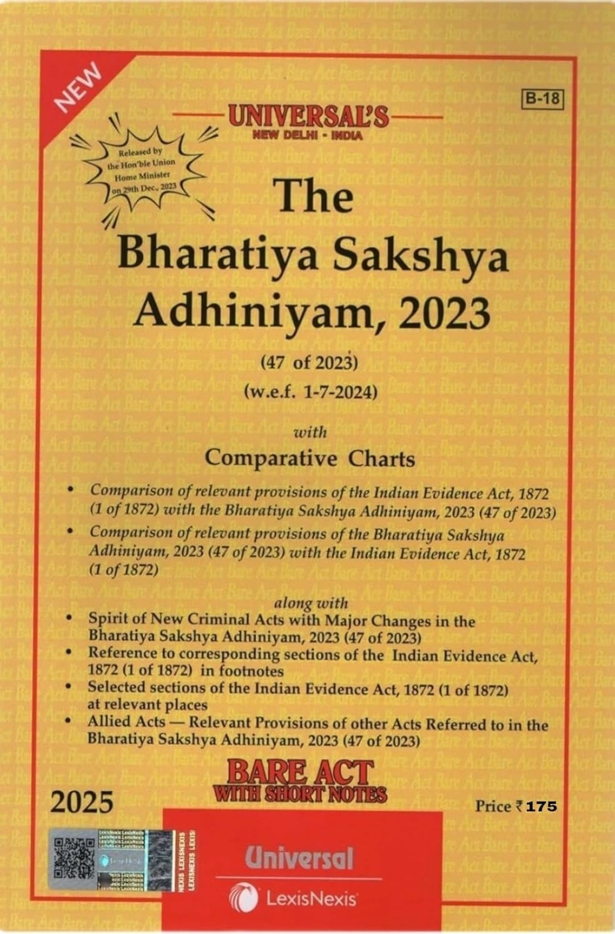 - Comprehensive Coverage: Includes all sections and provisions of the Bharatiya Sakshya Adhiniyam (Evidence Act) as amended till 2025.