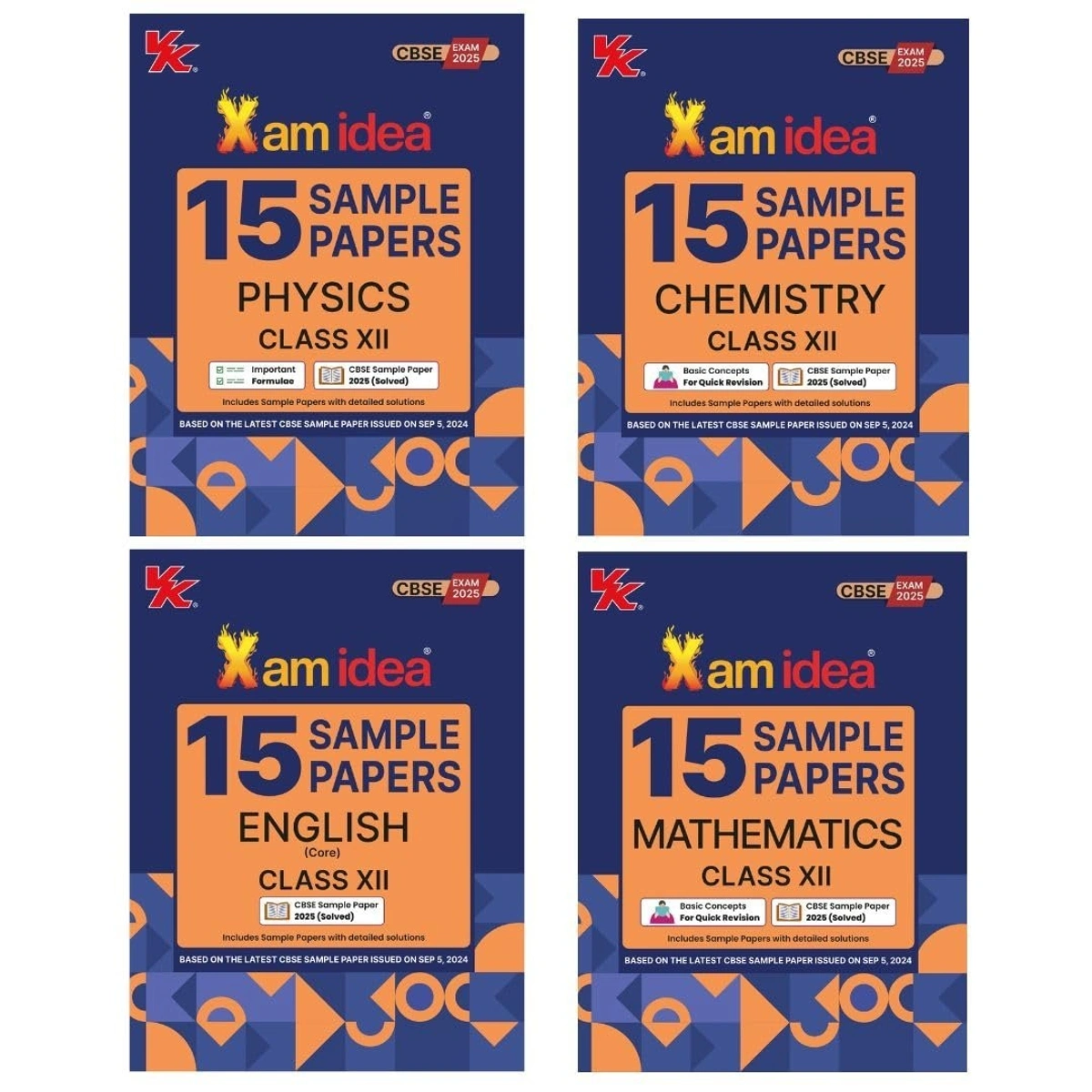 Xam Idea 15 Sample Papers (Physics, Chemistry, Maths, English) - Set of 4 Books - Class 12 (For 2025 Exam) CBSE